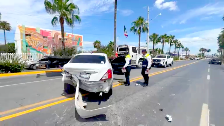 Reynosa, Tamaulipas.-Accidente vial se registró en un concurrido boulevard, donde varias unidades se impactaran, y que dejaran cuantiosos daños materiales, leves lesiones en los participantes, y caos vehicular.