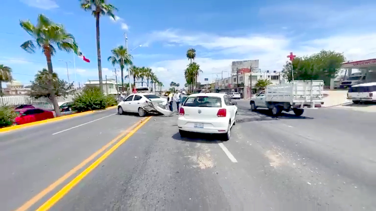 Reynosa, Tamaulipas.-Accidente vial se registró en un concurrido boulevard, donde varias unidades se impactaran, y que dejaran cuantiosos daños materiales, leves lesiones en los participantes, y caos vehicular.