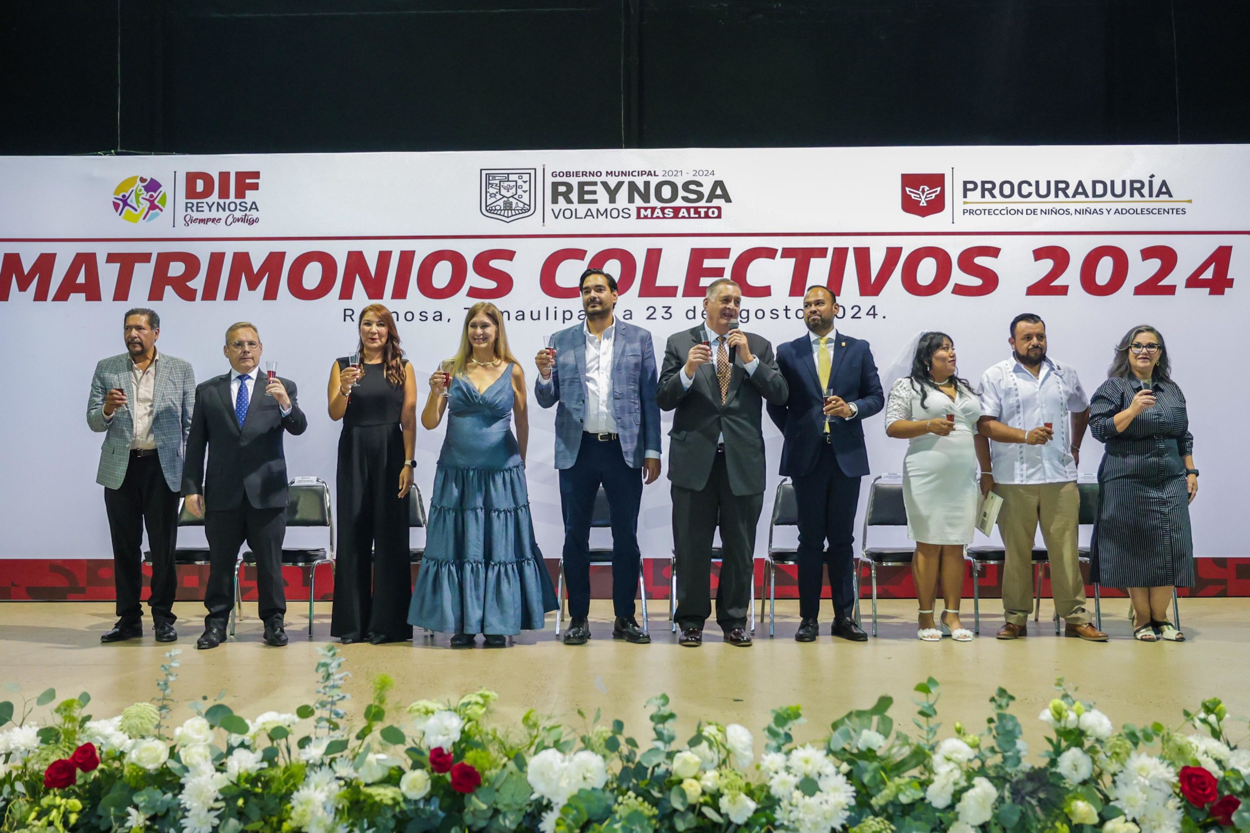Con estos matrimonios colectivos, el Alcalde Carlos Peña Ortiz y el DIF-Reynosa están haciendo una diferencia positiva en la comunidad, apoyando a las familias y promoviendo un futuro mejor para todos; asistieron: Oscar Federico De la Garza García, Oficial Segundo, y Victoriano Álvarez Rojas, Oficial Cuarto.