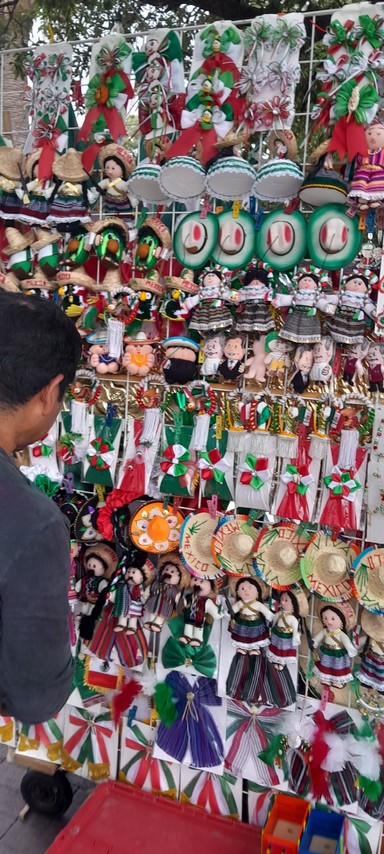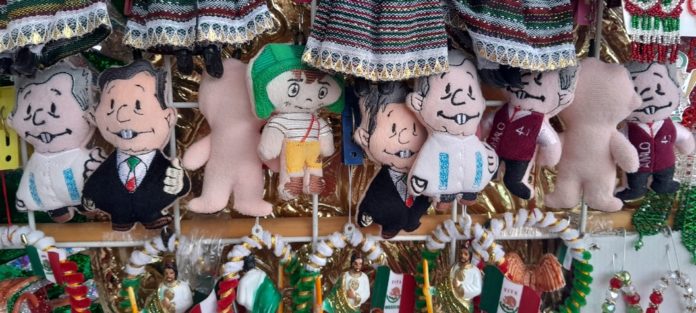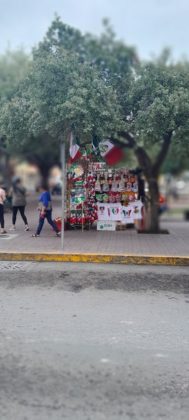 El puesto de Ramiro se ubica en la plaza Juárez, muy cerca del puente internacional uno, y el colorido de tanta banderita y motivos patrios llama la atención, aunque a decir suyo, lo que más solicitan las personas que se acercan a su puesto de venta, son los llamados ‘amlitos’, un simpático muñequito de tela que es muy solicitado.