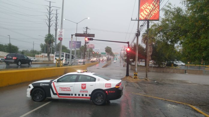 Ante esta situación, la Dirección de Tránsito y Vialidad del Municipio, apostó una patrulla en cada paso, para evitar que automovilistas entren y se pongan en riesgo ante la presencia del agua estancada que bloqueó el sistema de bombeo pluvial.