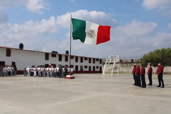 Ciudad Victoria, Tamaulipas.-Dentro de la estrategia integral de reinserción social, personas privadas de la libertad (PPLs) en los Centros de Ejecución de Sanciones (CEDES) de Matamoros y Altamira llevaron a cabo los tradicionales honores a la bandera.