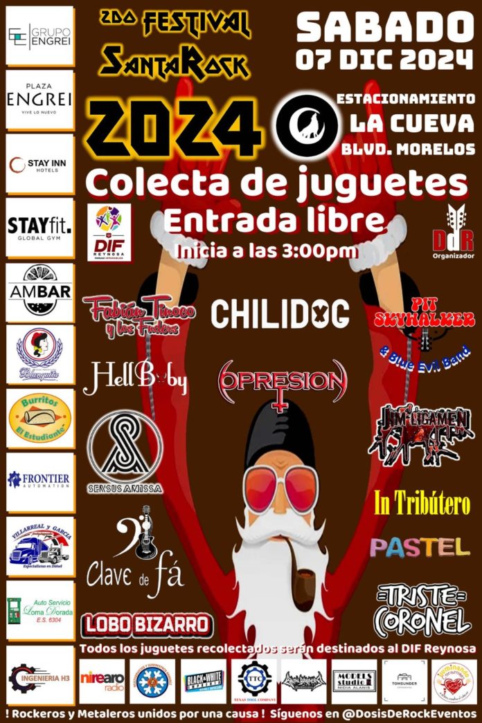 El Sistema DIF Reynosa invita a participar en el Segundo Festival “Santa Rock 2024”, este sábado 7 de diciembre, evento con causa que contará con la presencia de 12 increíbles bandas de Rock, Metal, y para asistir solo se necesita donar un juguete.