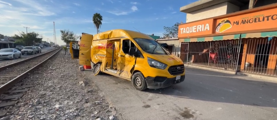 Los hechos se registraron sobre la avenida Revolución o Ferrocarril Poniente, de la zona Centro, donde una unidad de mensajería fuera impactada por el tren, luego de que intentara ganarle el paso.