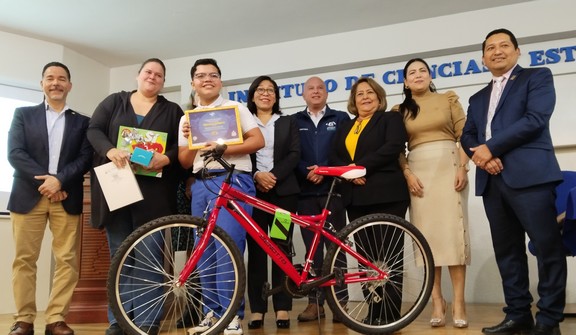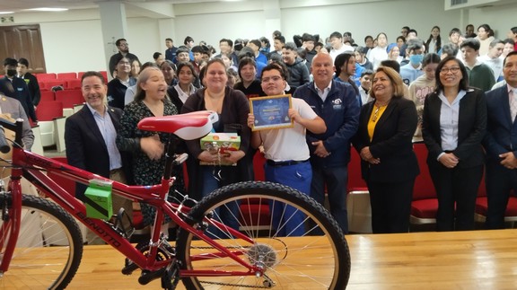 Como premio, Mauricio recibió una bicicleta, un iPad, un juego de mesa y un dispositivo Alexa. Este premio fue entregado por el Presidente del Consejo Directivo Nacional de AMASFAC, Ing. Cristóbal Montiel Campos.