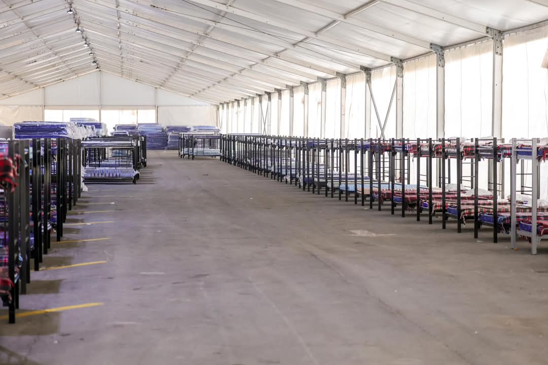 El albergue, que tiene capacidad para más de 2,500 personas, cuenta con dormitorios para familias, para mujeres y para hombres por separado; tiene cocina, baños y comedores.