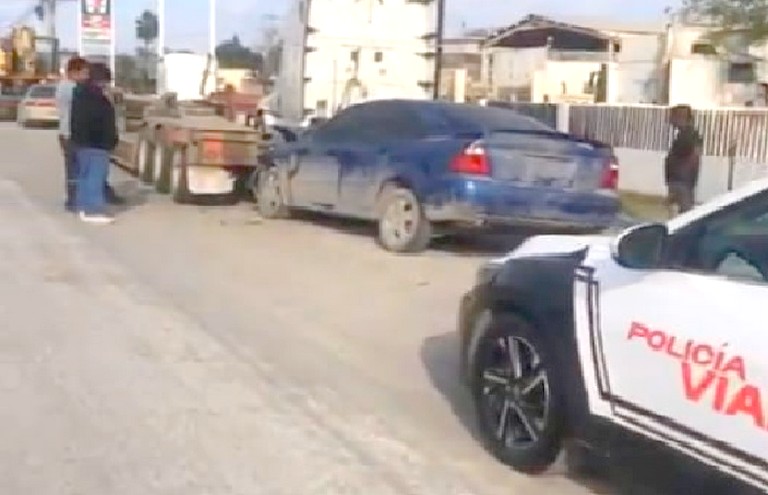 Reynosa, Tamaulipas.-Aparatoso accidente vial se registró en una concurrida carretera, donde una unidad se proyectara contra un tráiler, y dejara daños materiales, así como obstrucción vehicular.