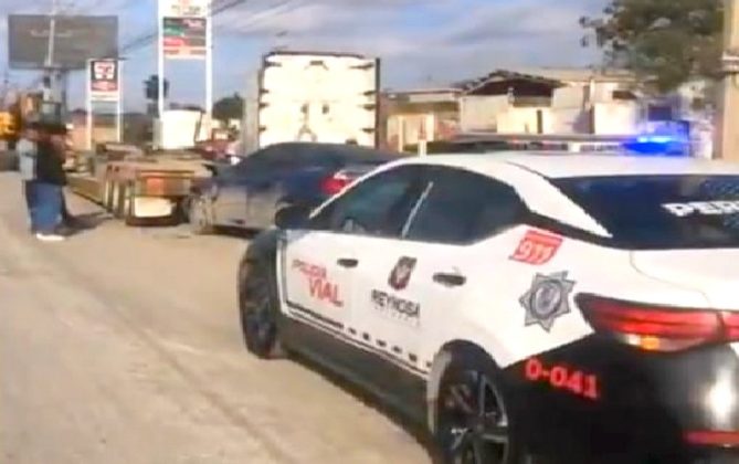 Los hechos se registraron sobre la carretera de Río Bravo a Reynosa, a un costado de la colonia Bienestar, donde una unidad compacta se proyectara contra un tráiler, del que dejara daños materiales.