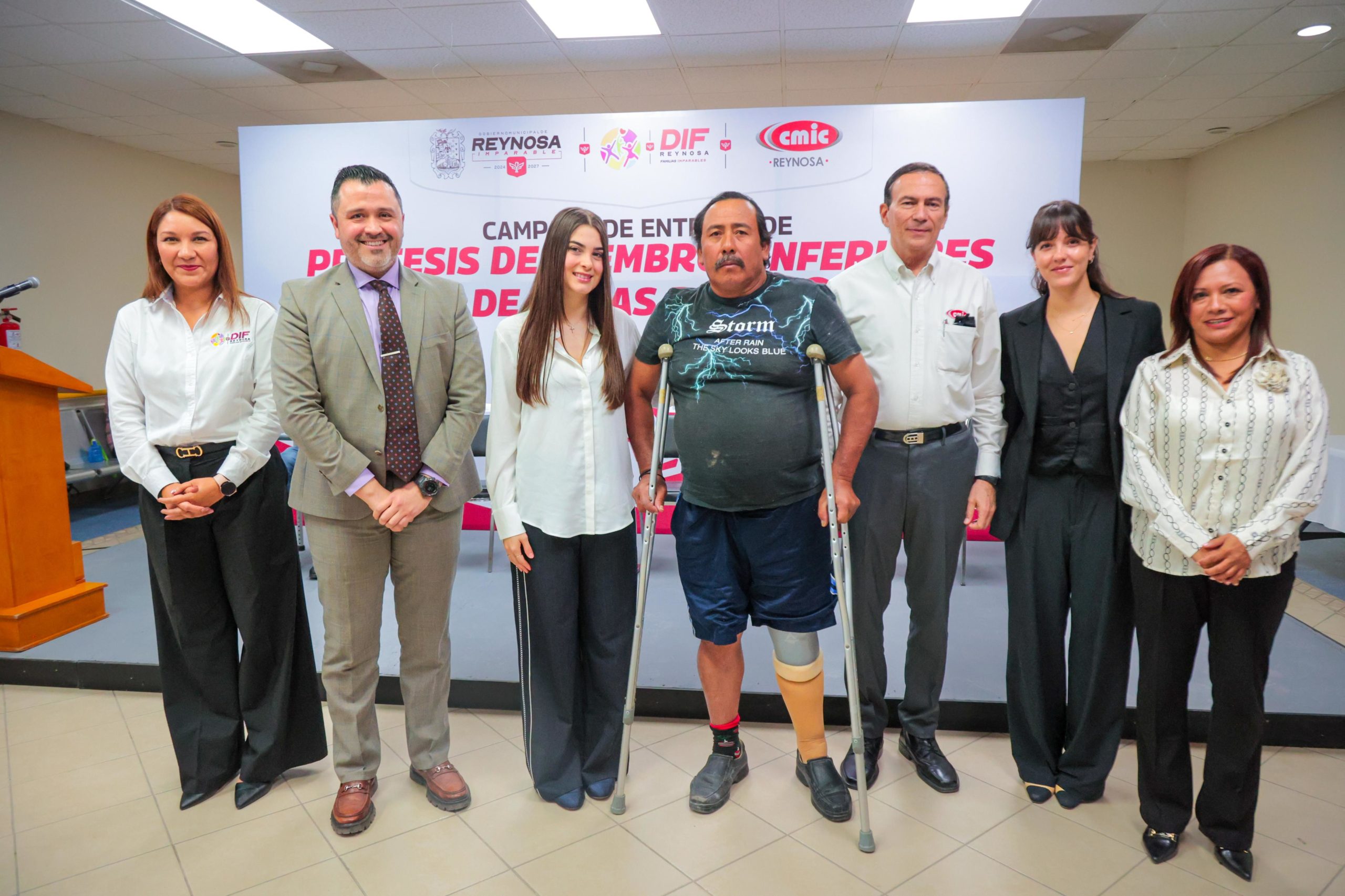 En el evento de Entrega de 13 Prótesis de Miembros Inferiores, Carlos Enrique Pérez González, en representación de los beneficiados, agradeció el trabajo en conjunto del Gobierno Municipal, DIF Reynosa que preside Carlos Luis Peña Garza y la Cámara Mexicana de la Industria de la Construcción Reynosa, porque este apoyo le permite volver con una vida más activa y más plena.