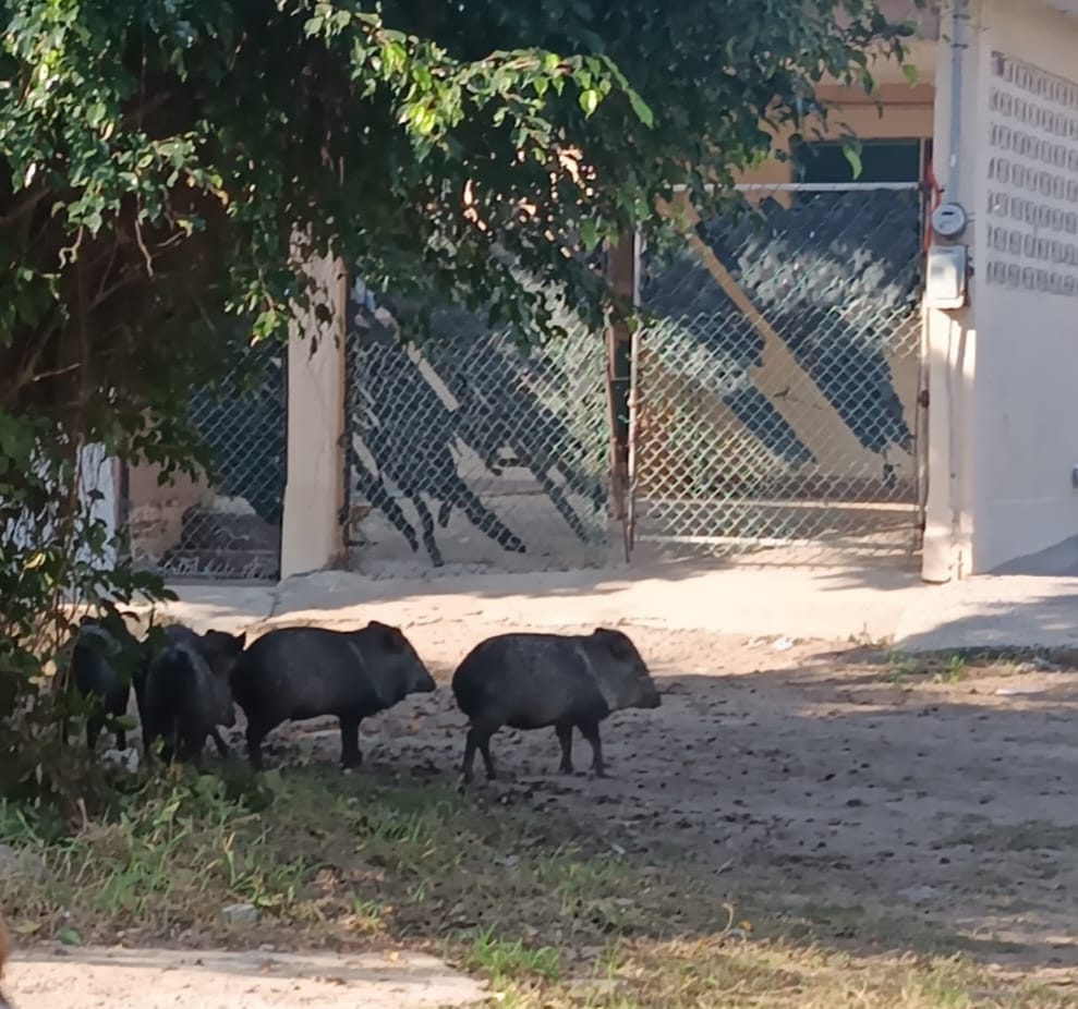 Madero, Tamaulipas.-Habitantes de la colonia Miramar fueron sorprendidos por un grupo de pecaríes deambulando por las calles de esta zona urbana.