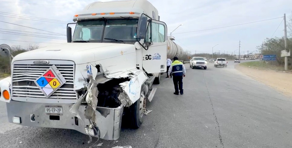 Los hechos se registraron en la conocida carretera a la Ribereña, a un costado del ejido Los Cavazos, donde participaran dos unidades quinta rueda, y que dejaran daños materiales.