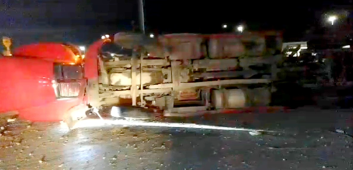 Los hechos se registraron sobre el boulevard Luis Donaldo Colosio, a pocos metros del puente internacional Reynosa-Pharr, donde un tráiler con remolque terminara volcado, y que dejara cuantiosos daños materiales en esa oscura carretera.