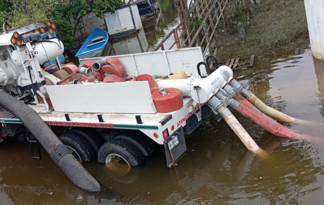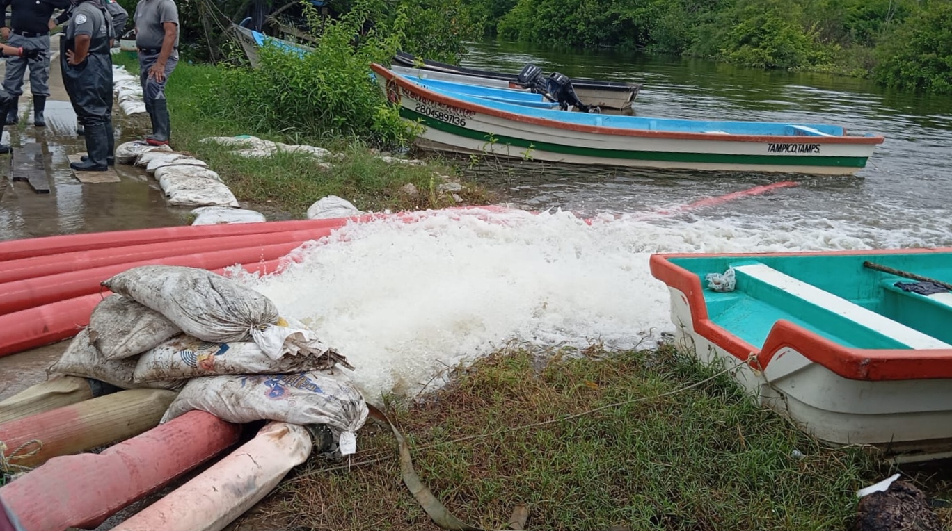 Tampico, Tamaulipas.-Descendió el nivel del agua en la colonia Vicente, Sector Moscú, la cual fue desfogada con tres bombas hacia el río Tamesí, y tres más de mayor dimensión se colocarán esta tarde a fin de agilizar los trabajos.