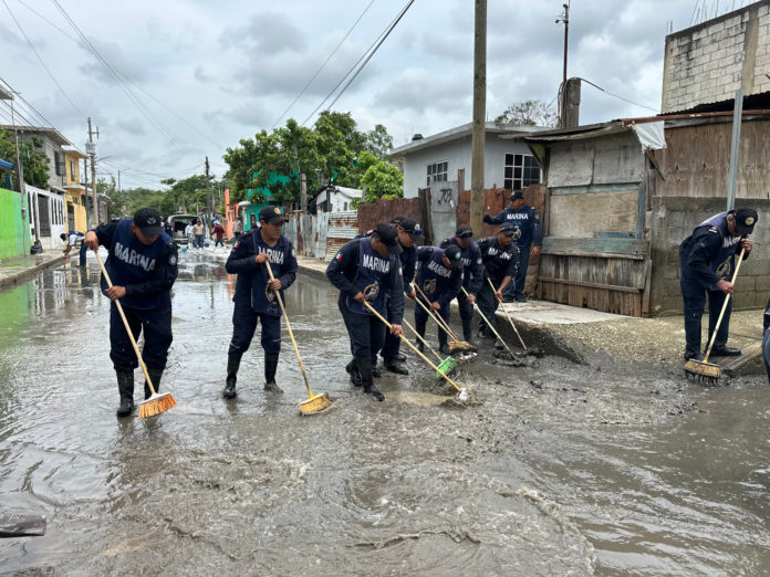 por conducto de la Primera Zona Naval, en coadyuvancia con Protección Civil, en el marco de la implementación del Plan Marina en su Fase de Recuperación, brinda apoyo a la población civil por el paso de la Tormenta Tropical “Barry”, en esta entidad.