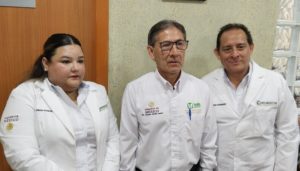 En rueda de prensa, Marggid Rodríguez Avendaño, coordinador federal de IMSS-Bienestar en Tamaulipas, acompañado del doctor Joaquín Juárez Durán, director del Hospital Carlos Canseco, dieron a conocer está acción, que realizan 3 médicos locales con la participación de otros doctores de distintas instituciones médicas.