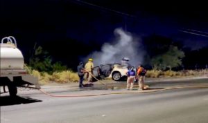 Reynosa, Tamaulipas.-Voraz incendio se registro sobre una tétrica carretera, donde acudieran unidades de bomberos para sofocarlo, y que dejara dñaos materiales.