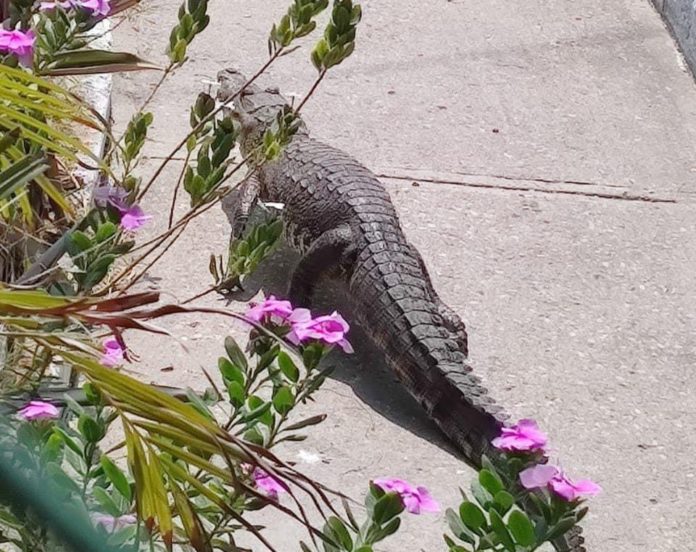 Madero, Tamaulipas.-Tras las lluvias registradas recientemente, el avistamiento de cocodrilos en zonas urbanas de Ciudad Madero ha incrementado de forma considerable, principalmente en sectores cercanos a cuerpos de agua.