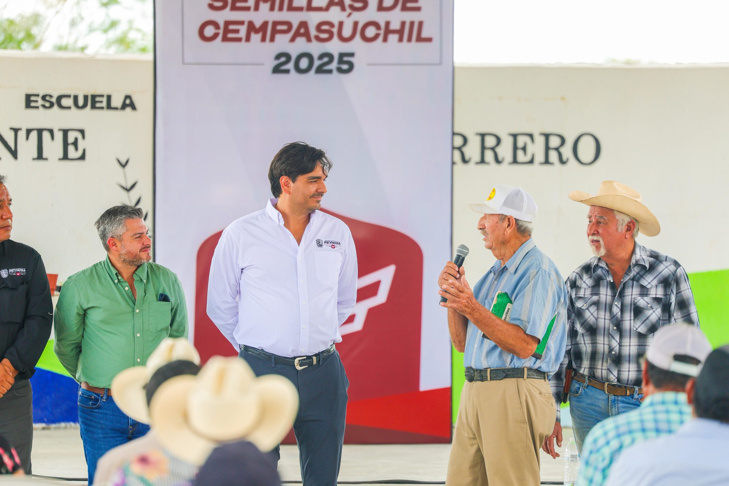 El Alcalde Carlos Peña Ortiz presidió la Entrega de Semilla de Cempasúchil 2025 en el ejido La Llorona Nueva, apoyos que con este programa dirige al campo y que recibieron familias de la zona sur del municipio, quienes estarán creando huertas de traspatio como alternativa económica.