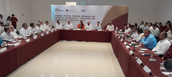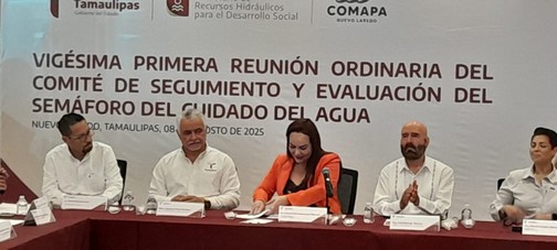El funcionario estatal participó en la 21ª Reunión del Semáforo del Agua en esta ciudad, en la que estuvo acompañado de la alcaldesa Carmen Lilia Canturosas, de gerentes de los organismos operadores del agua de algunos municipios del norte de la entidad, así como de representantes de organismos estatales afines al tema y líderes de sectores productivos, y se realizó en las instalaciones de la Infoteca Sor Juana Inés de la Cruz al filo del mediodía.