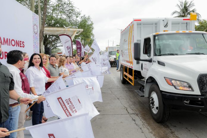Tampico, Tamaulipas.-Ofrecer a los tampiqueños, servicios públicos de calidad, ha sido el sello de la administración municipal, aseguró la alcaldesa Mónica Villarreal Anaya al destacar que la incorporación de 21 camiones recolectores de basura, ha sido esencial para garantizar una cobertura total de este servicio en todos los sectores de la ciudad.