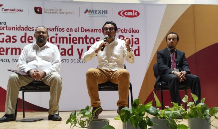 Tampico, Tamaulipas -La Secretaría de Desarrollo Energético de Tamaulipas realizó este miércoles el Foro Oportunidades y Desafíos en el Desarrollo de Petróleo y Gas de Yacimientos de Baja Permeabilidad y Porosidad, en el auditorio de la Cámara Mexicana de la Industria de la Construcción.