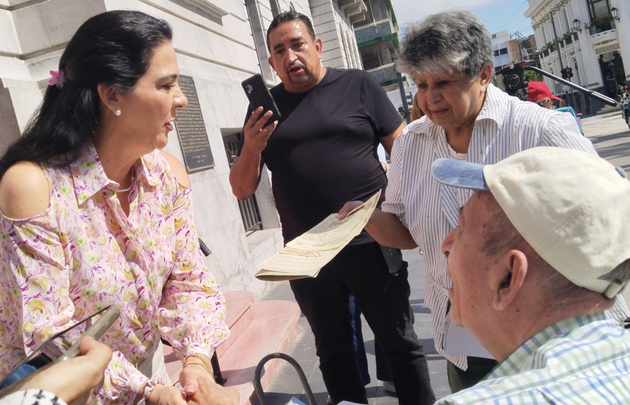 En el momento que se encontraba denunciado los hechos, en el portico del palacio municipal, llegó la presidenta municipal, Mónica Villarreal Anaya, quien les preguntó que les pasaba y les dijo que los iba a canalizar con un abogado del Ayuntamiento para que los ayude en esta situación.