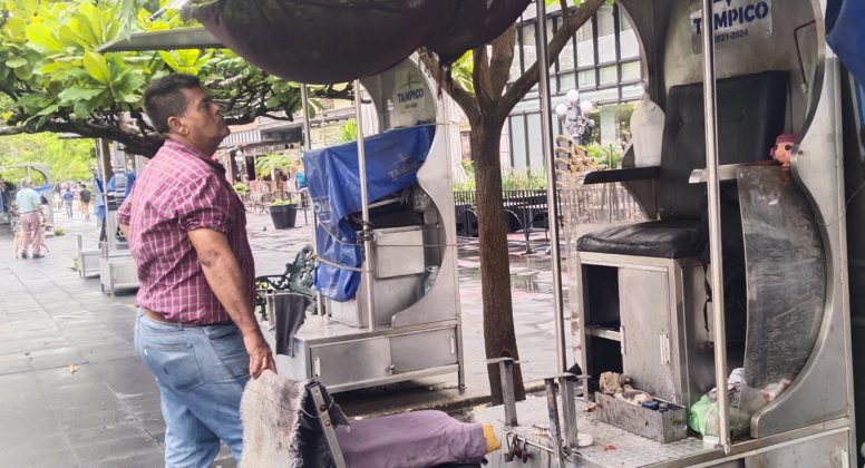 Tampico, Tamaulipas.-Vandalismo en sus implementos de trabajo y robo a los boleros de la plaza de Armas de este municipio, se registró la madrugada de este miércoles.