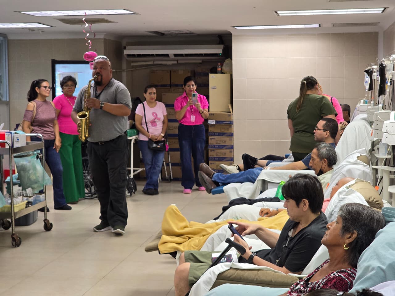 “Estamos aquí porque sabemos que la música, es una herramienta efectiva para mejorar el estado anímico y ofrecer un momento de distracción y relajación durante este proceso de quimioterapia”, expresó Villarreal Anaya.
