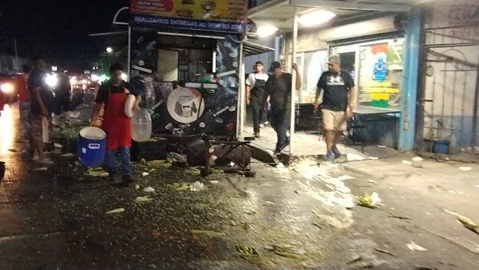 Al lugar acudieron personal del área de Peritajes de Tránsito y Vialidad, quien tomo conocimiento de ese incidente, y la persona fue puesta a disposición de las autoridades correspondientes los daños también fueron materiales en los puestos de comida, y leves lesiones de los trabajadores.