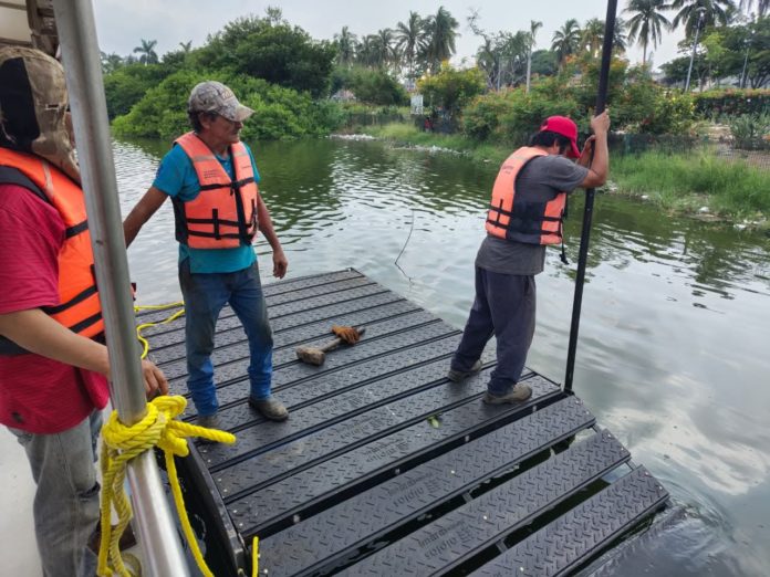 Tampico, Tamaulipas.-El Gobierno Municipal de Tampico, que preside la alcaldesa Mónica Villarreal Anaya, a través de la Secretaría de Obras Públicas, lleva a cabo la fabricación e instalación de asoleaderos para cocodrilos en la Laguna del Carpintero, con el propósito de mejorar las condiciones del hábitat natural de esta especie y fomentar la convivencia armónica entre la comunidad y la fauna silvestre.