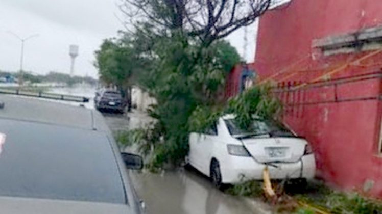 Otro accidente se registró en la colonia Fraccionamiento San Valentín, donde una unidad terminara proyectada sobra un árbol dejando cuantiosos daños materiales, y obstrucción vehicular.