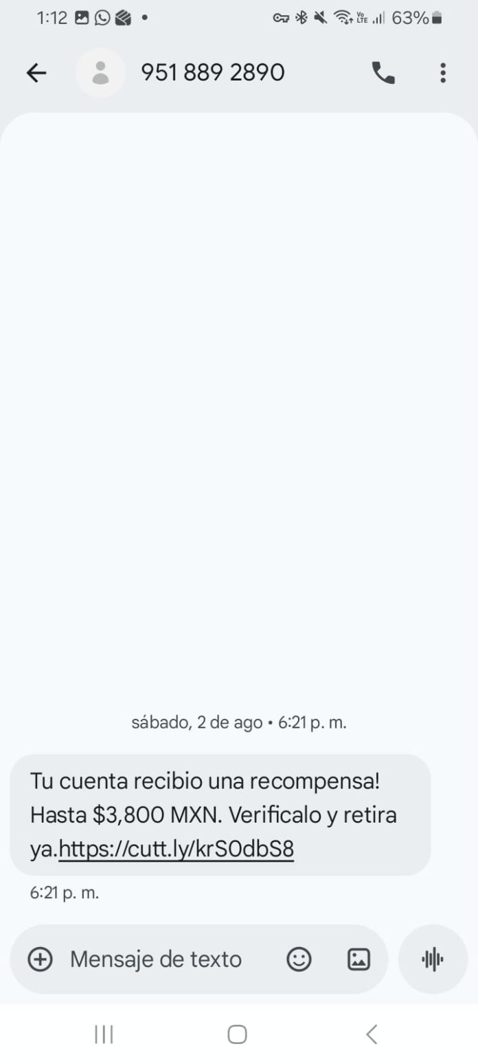 Detalló que el fraude comienza cuando la víctima recibe un mensaje de texto con una liga que dirige a un portal falso, donde se solicita registrarse o iniciar sesión. Al ingresar datos personales, los delincuentes obtienen información sensible que posteriormente puede ser utilizada para cometer fraudes, extorsiones o robos de identidad.