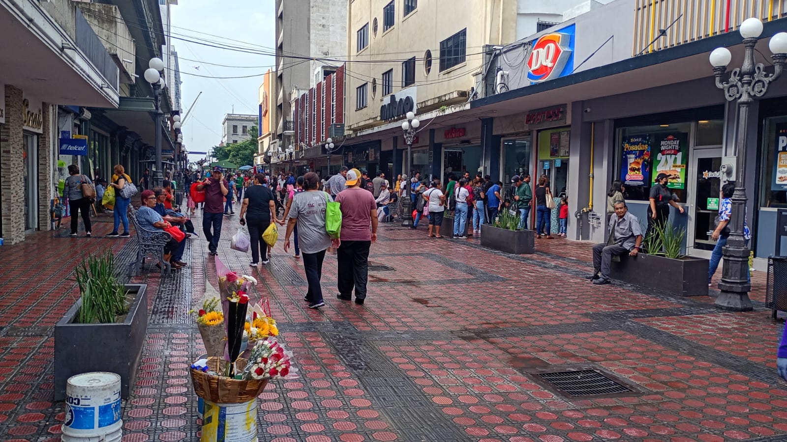 Y aunque al medio día se registró fuerte lluvia, ocasionando corrientes de agua por las diversas arterias del centro de la ciudad, nada más se quitó la precipitación y las personas siguieron comprando.