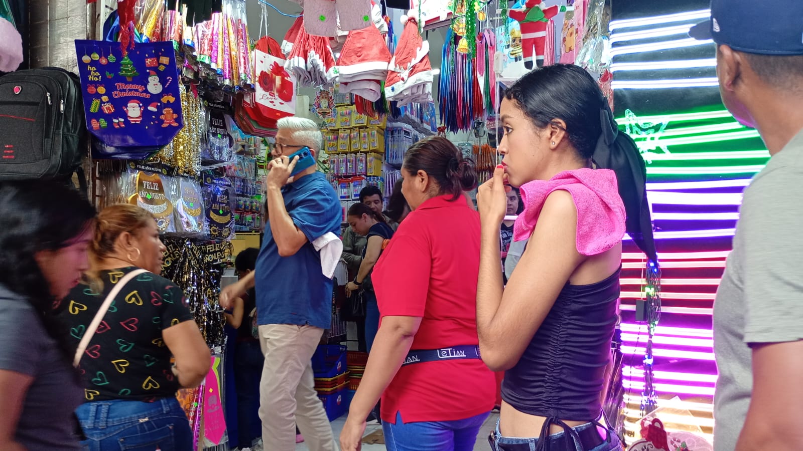 Tampico, Tamaulipas.-Los negocios de Tampico se vieron abarrotados este día previo a la Navidad, ya que la gente está realizando sus compras de última hora para regalar a sus seres queridos.