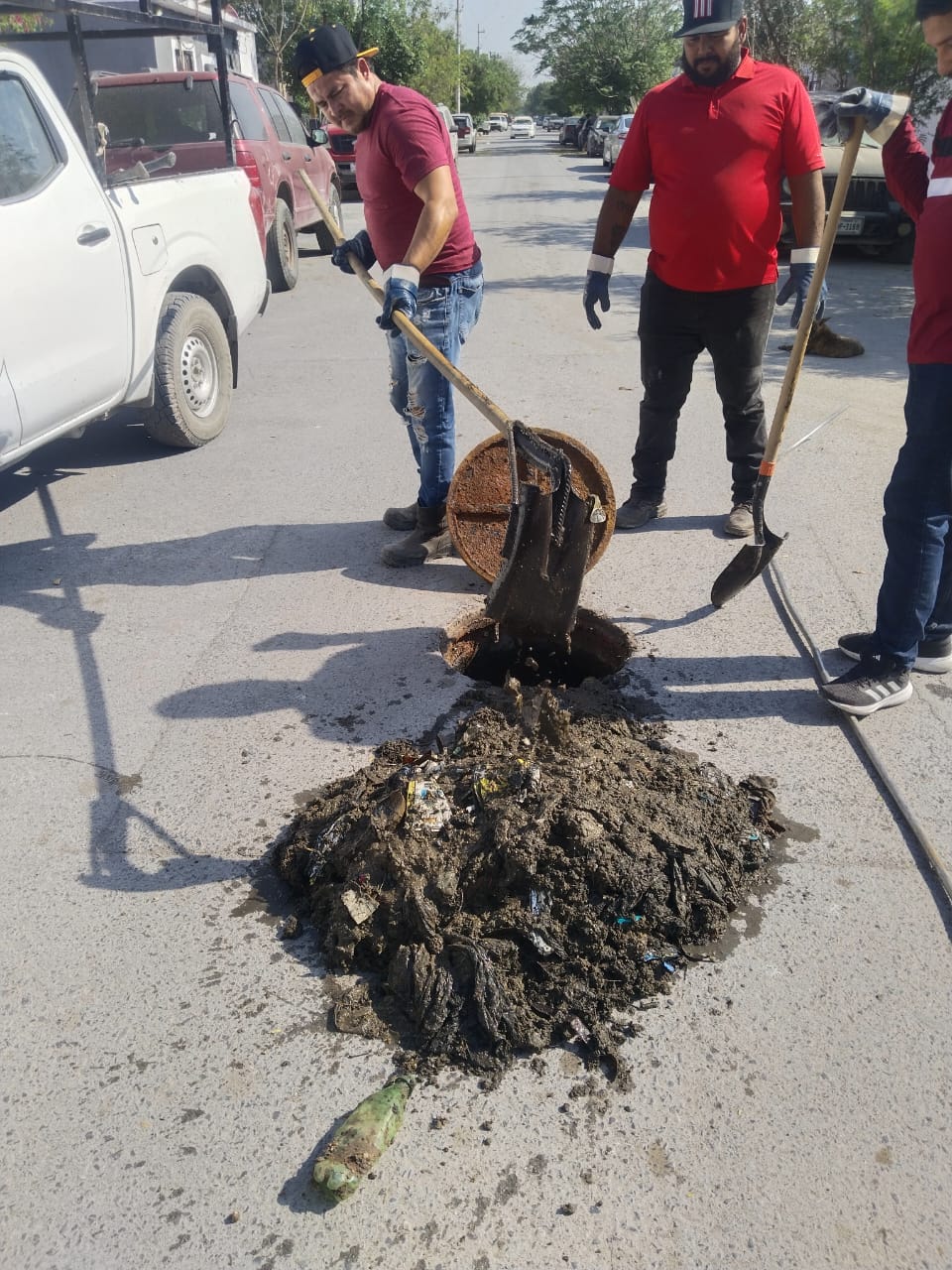 COMAPA de Reynosa continúa con los trabajos de limpieza de pozos de visita en distintos puntos de la ciudad, donde se ha detectado una considerable acumulación de basura, desechos sólidos, grasas y otros residuos que afectan el correcto funcionamiento de la red de drenaje.