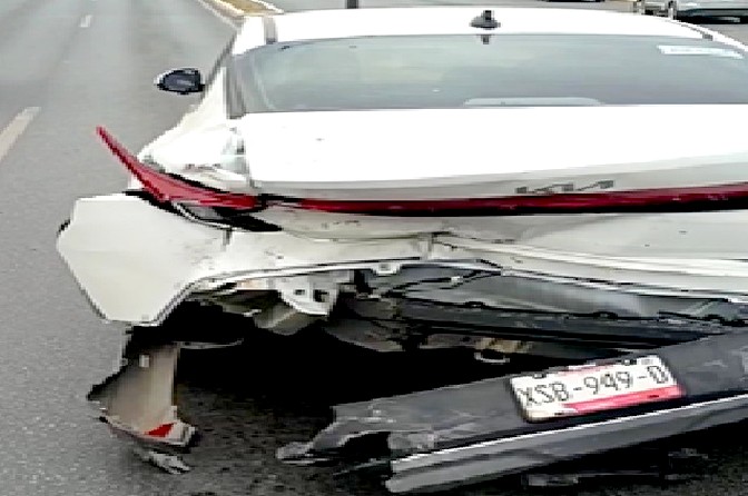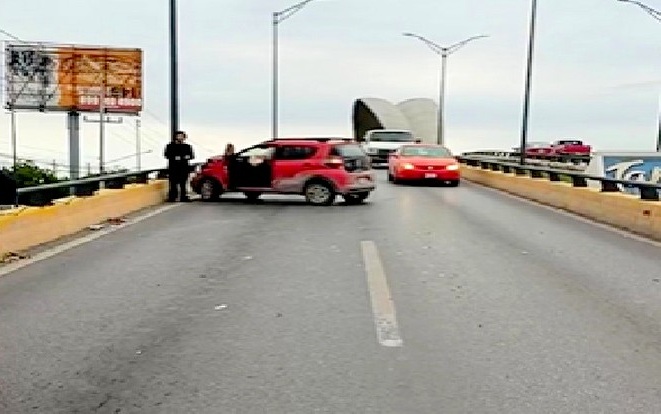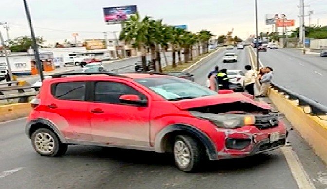 Reynosa, Tamaulipas.-Accidente vial se registro en un concurrido puente vehicular, donde el saldo final fuera de daños materiales, y caos vehicular.