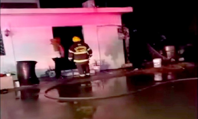 Reynosa, Tamaulipas.-Movilización de unidades de bomberos acudieron a sofocar el incendio de dos viviendas en un apartado sector de la ciudad, y que dejara daños materiales, así como contaminación ambiental.