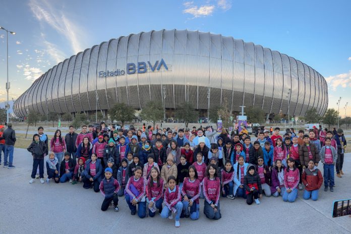 En el marco de las acciones de promoción turística previas al Mundial de Futbol 2026 y como un incentivo a los alumnos más destacados de educación básica, este día, la alcaldesa Mónica Villarreal Anaya despidió a un nutrido contingente que partió al estadio Monterrey BBVA “Gigante de Acero” para asistir al juego de las Leyendas Corona coordinado por la FIFA y el Comité organizador de la justa mundialista.