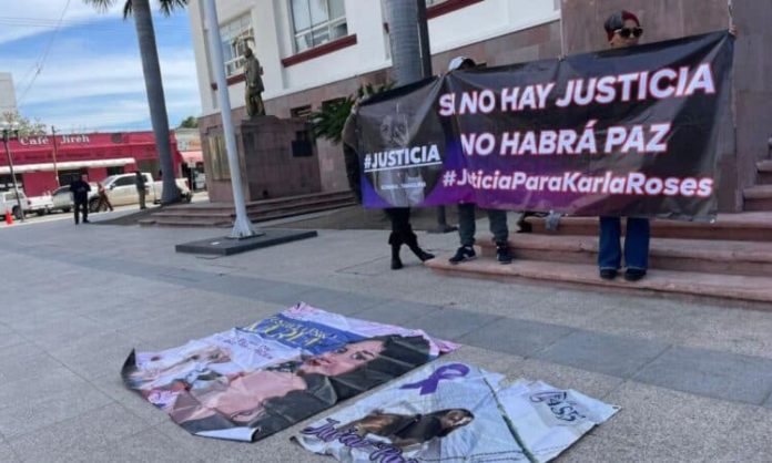 El día de hoy, a un año cuatro meses del feminicidio de la menor Karla Roses, su madre, Elizabeth Roses Ramírez, se manifestó en la escalinata de Palacio de Gobierno para exigir justicia, acompañada por integrantes del Colectivo Feminista Manglar.