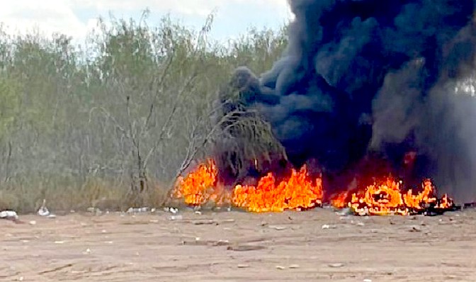 Reynosa, Tamaulipas.-Unidades de bomberos atendieron un llamado de emergencias para sofocar un incendio en pastizal en un apartado sector de la ciudad, y que dejara daños materiales, asi como contaminación ambiental.