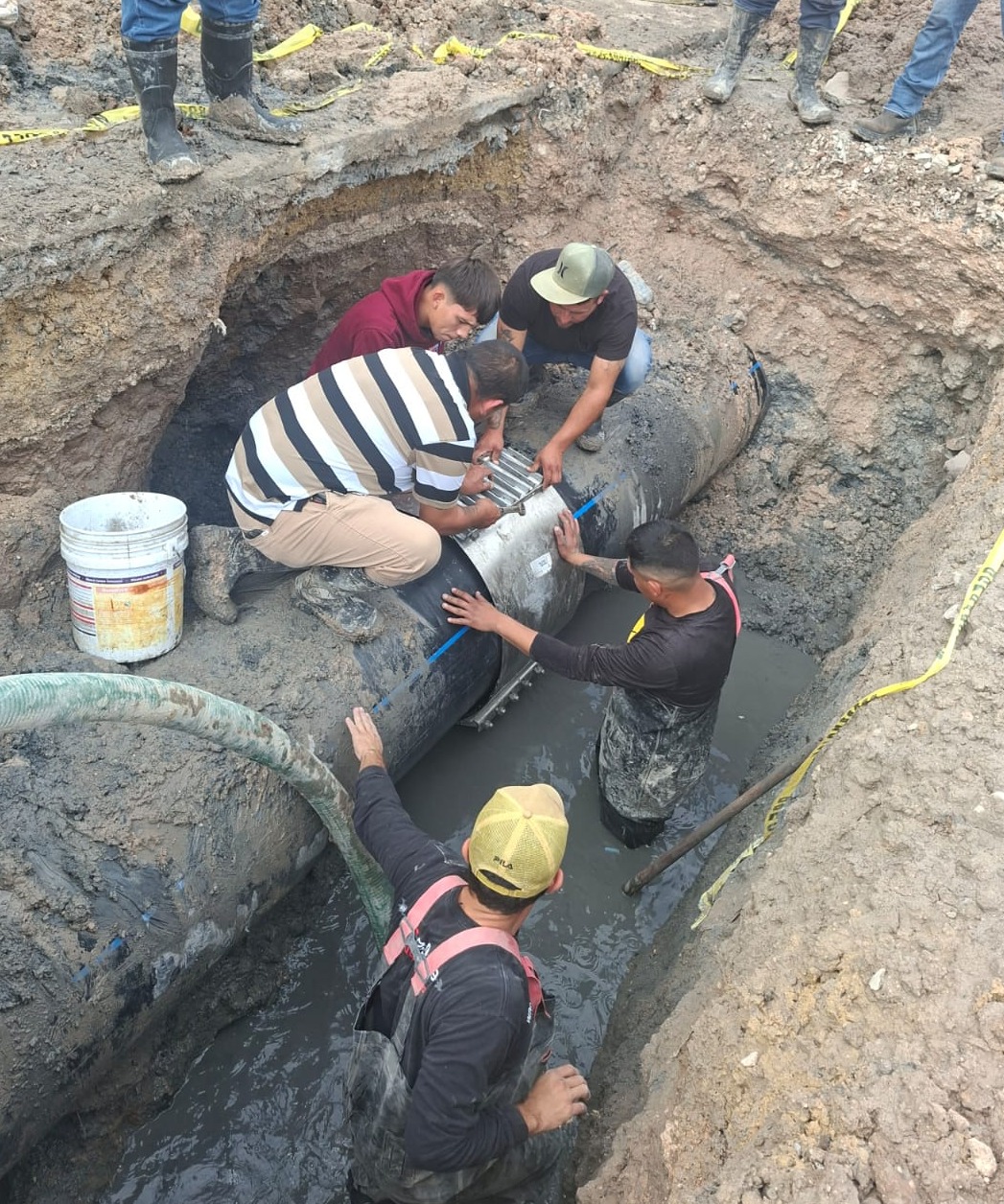 Por instrucciones del Presidente Municipal, Carlos Peña Ortiz, la Comisión Municipal de Agua Potable y Alcantarillado de Reynosa concluyó los trabajos de reparación en la tubería del Emisor del Cárcamo 1, ubicados sobre la calle Calandrias, en la colonia Manuel Tárrega.