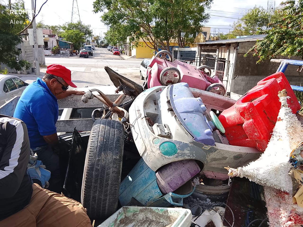 La colonia Rincón de las Flores se sumó a la intensa jornada de descacharrización llevada a cabo por trabajadores municipales, atendiendo las indicaciones del Alcalde Carlos Peña Ortiz para brindar seguridad sanitaria a las familias de dicho sector.