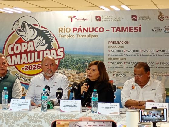 “Arrancamos Copa Tamaulipas 2026 aquí en la zona sur de Tamaulipas con este gran evento, una modalidad de embarcacion, modalidad de pesca de róbalo hoy registrada aquí en la zona, en el río Pánuco y pues con grandes premios con una bolsa de más de 200 mil en premios, una importante premiación buscando la participación no solamente de los pescadores que ya ya lo hacen comúnmente, buscando también que se integren más familias, de que vengan aquí a Tampico y puedan disfrutar de estas maravillosas lugares como lo es en el río Pánuco y en el río Tamesí, disfrutar de una gran pesca que pueden realizar, este este gran evento se lleva a cabo el día 7 y 8 de febrero, y tenemos a partir del día 6 tenemos lo que es abierto un registro, ahorita estamos precisamente en un preregistro ya a través de la Asociación de Pesca quien se encarga precisamente de llevar a cabo este este gran evento en coordinación con los demás Club y en coordinación con con la comisión de Caza y Pesca Deportiva; entonces, de ese ya estamos en una preinscripción en la cual los invitamos a que por ahí nos busquen para que puedan llevar a cabo su registro con un precio especial”.