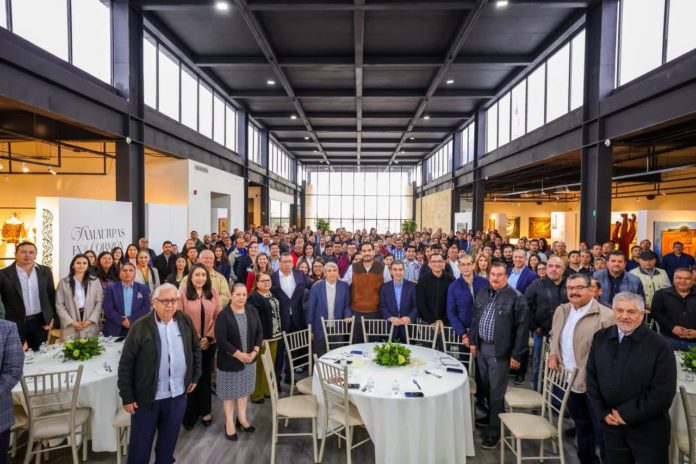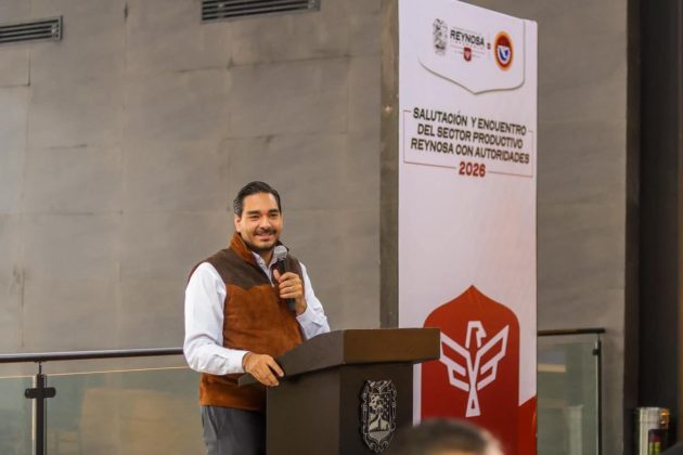 El Presidente Municipal Carlos Peña Ortiz presidió junto con Reynaldo Garza Elizondo, Secretario General de la Federación de Trabajadores de Reynosa y con Edmundo García Román, Secretario de la Federación de Trabajadores de Tamaulipas, la “Salutación y Encuentro del Sector Productivo Reynosa con Autoridades 2026”, una muestra de unidad de Gobierno y sociedad civil, evento celebrado en el Museo del Ferrocarril, Historia, Arte y Maquila.