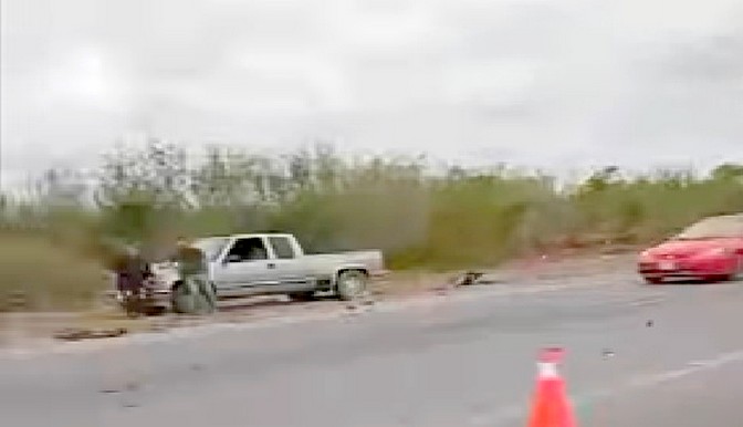 Reynosa, Tamaulipas.-Aparatoso accidente vial se registro en el tenebroso “Viaducto de la Muerte”, donde esta vez dejara daños materiales, y caos vehicular.