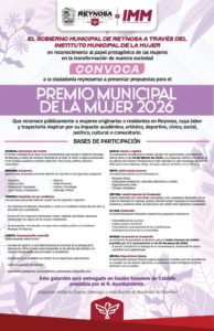 El Alcalde Carlos Peña Ortiz invita a participar en la Convocatoria del Premio Municipal de la Mujer 2026, que reconoce públicamente a mujeres originarias o residentes en Reynosa, cuya labor y trayectoria inspiran por su impacto académico, artístico, deportivo, cívico, social, político cultural o comunitario.