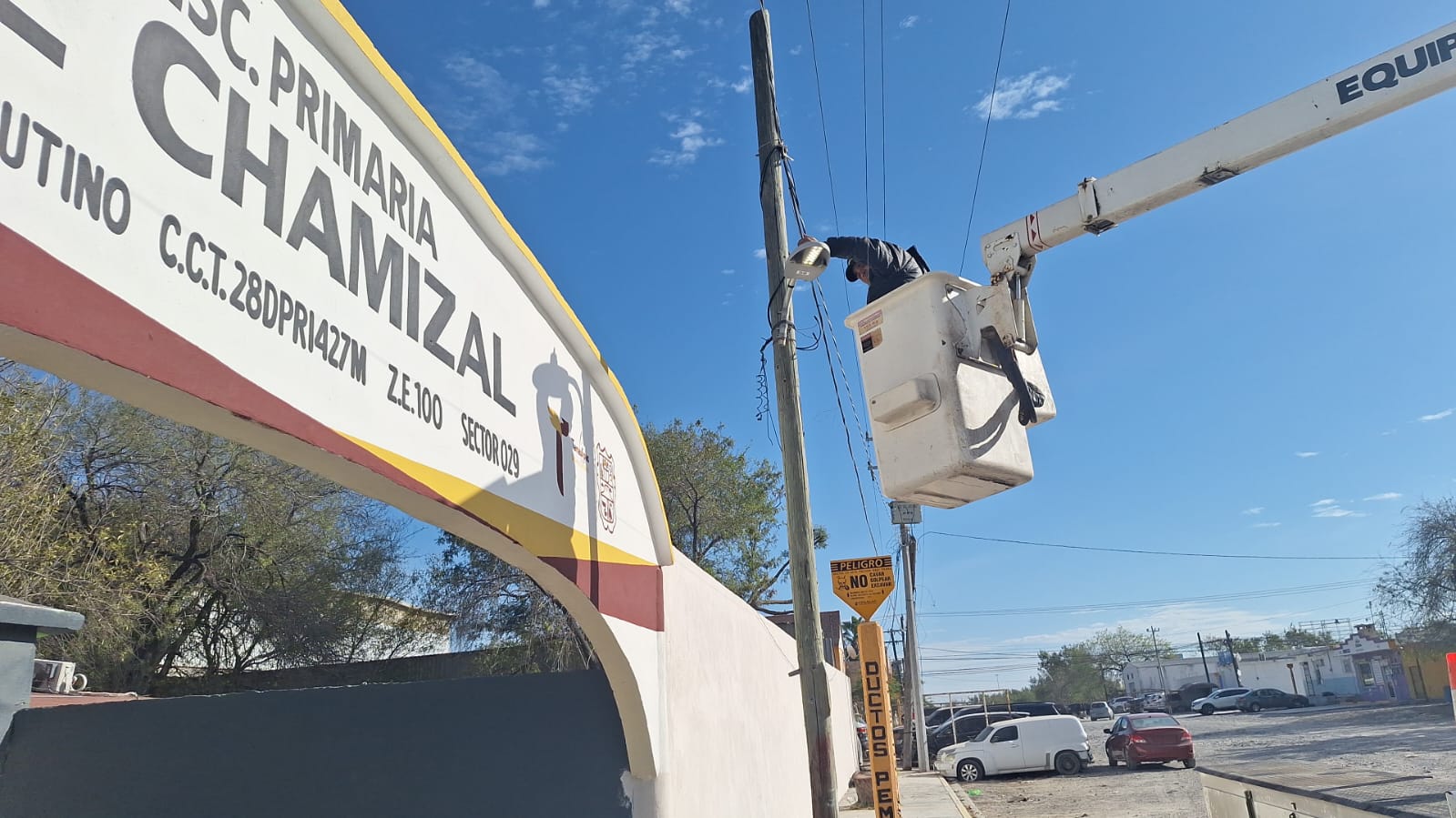 Reconexión de lámpara LED frente a escuela El Chamizal