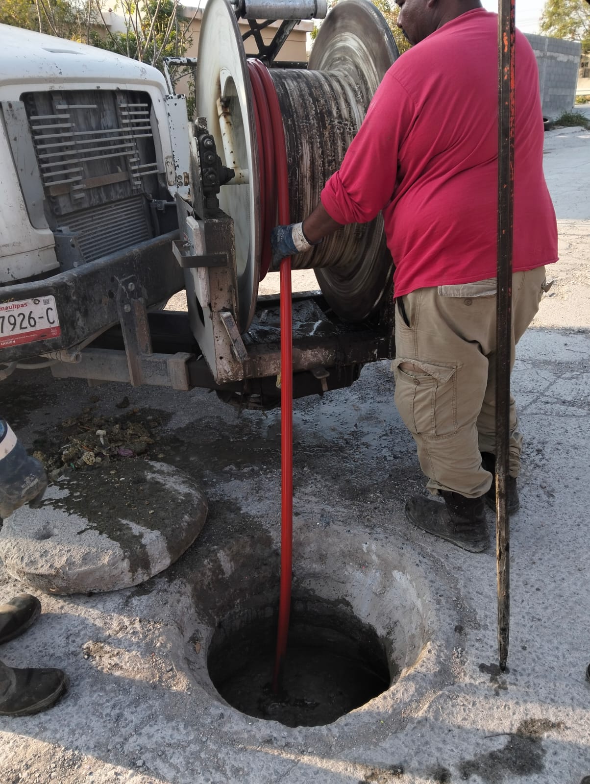 Como parte de las acciones permanentes de mantenimiento preventivo, cuadrillas de la Comisión Municipal de Agua Potable y Alcantarillado de Reynosa llevaron a cabo maniobras de sondeo en la línea general de drenaje sanitario en distintos sectores de la colonia Riberas del Carmen.