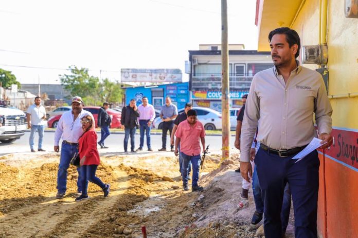El Presidente Municipal Carlos Peña Ortiz supervisó el avance en la construcción de la pavimentación de la calle Nuevo Laredo en la colonia Revolución Obrera, a donde acudió acompañado por funcionarios municipales y de la COMAPA.