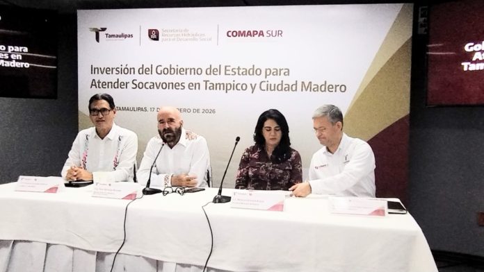 Tampico, Tamaulipas. –Con una inversión de 105 millones de pesos el Gobierno del Estado atenderá socavones en Tampico y Ciudad Madero, informó el secretario de Recursos Hidráulicos para el Desarrollo Social de Tamaulipas, Raúl Quiroga Álvarez.